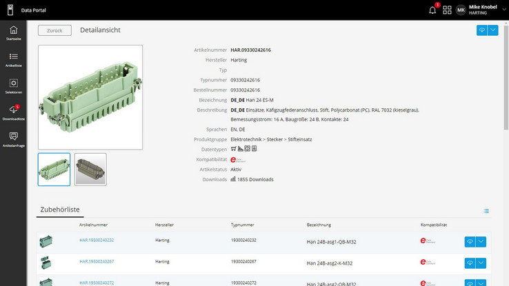 고객의 효율적인 디지털 제품 엔지니어링을 지원하고자 HARTING은 수년간 EPLAN Data Portal을 통해 개별 제품 4,200여 개에 대한 이플랜 데이터를 제공해오고 있습니다. 2021년 11월 이후 대략 2/3의 데이터 세트가 최신 EPLAN Data Standard로 업데이트를 완료했습니다. 사용자는 이플랜을 통해 액세스할 수 있으며 더 많은 데이터가 추가될 예정입니다. HARTING의 포괄적인 EDS 데이터는 사용자가 이플랜 애플리케이션의 잠재력을 최대한 활용할 수 있도록 지원합니다.